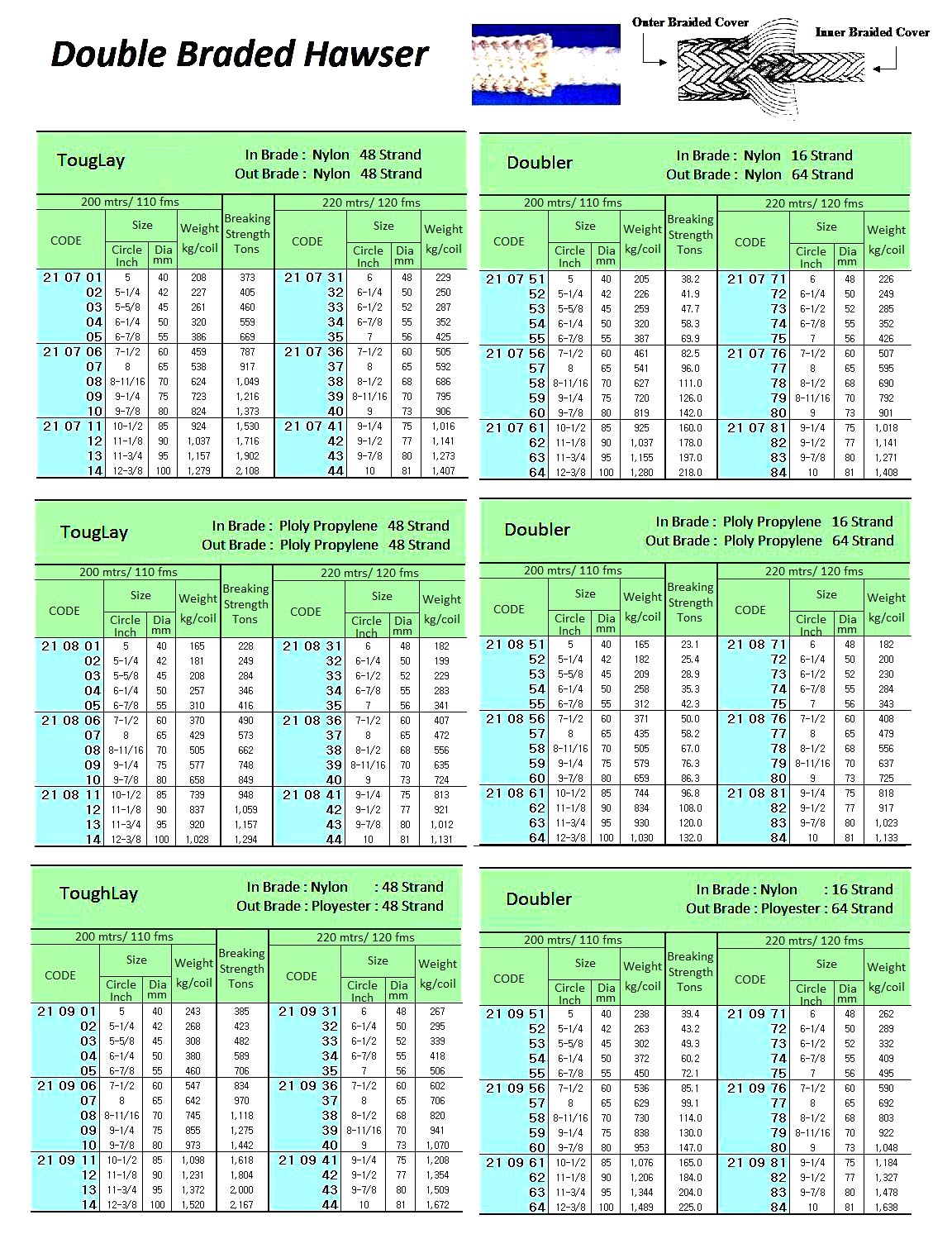 PE & NYLON DOUBLE BRAID HAWSER, 5-1/4"CIR ( D= 42 MM )x 200 M |