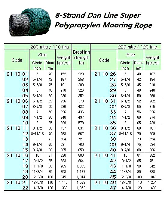 HAWSER P.P 8-STR. DAN-LINE-SUPER, 8-1/2"CIR x 220 M ( D= 68 MM ) |