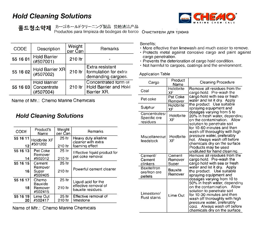 HOLD CLEANING SOLUTION, CHEMO BAUXIDE REMOVER (#502415), 210 LTR, CHEMO MARINE CHEMICALS |