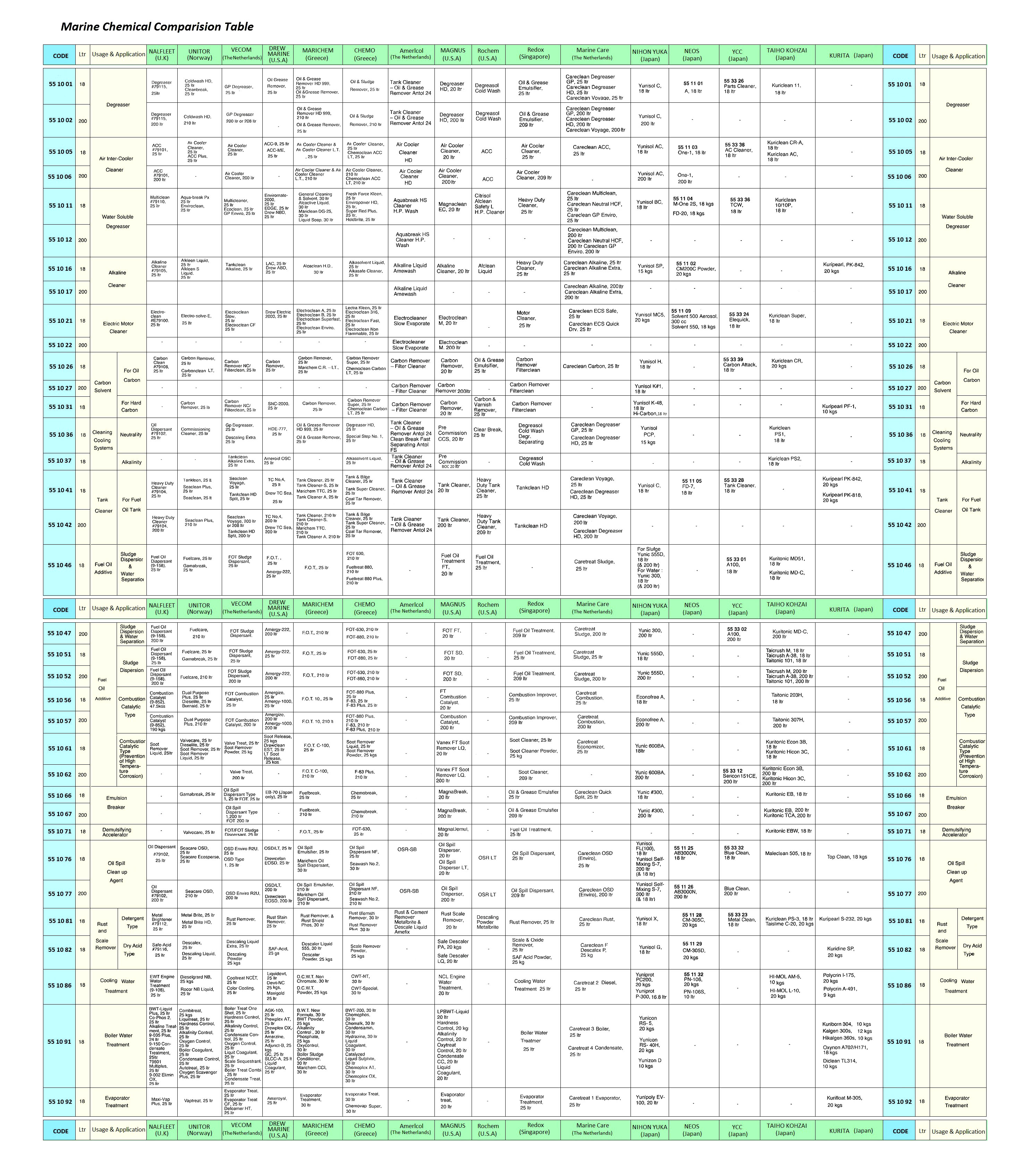 MARINE CHEMICAL COMPARISION TABLE |