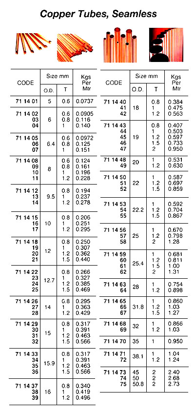 SEAMLESS COPPER TUBE, 5 MTR/PC, 45 x2 MM, |