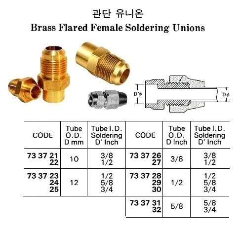BRASS FLARED FEMALE SOLDERING UNION, 10 MM x 3/8" |