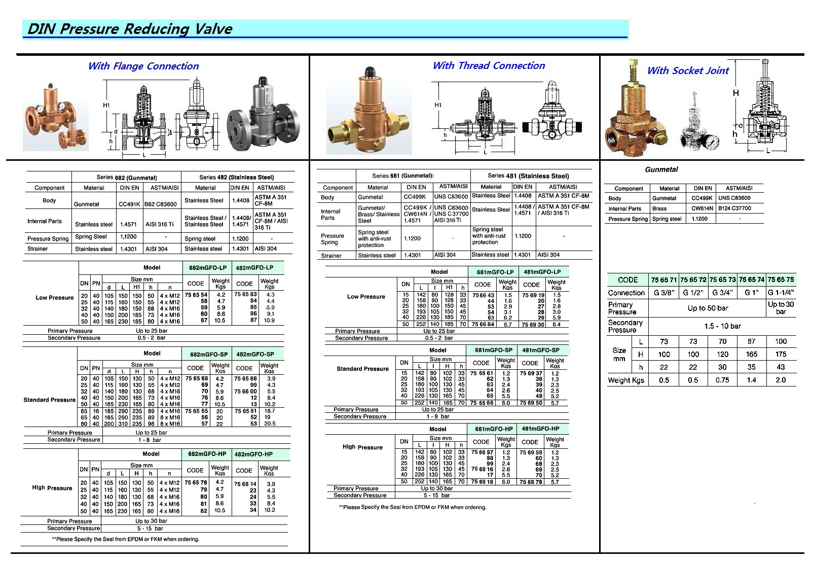 PRESS. REDUCING VALVE (DIN), GUNMETAL, THREAD CONNECTION, STANDARD PRESSURE, GOETZE KG, 681mGFO-SP, SIZE DN 50 |