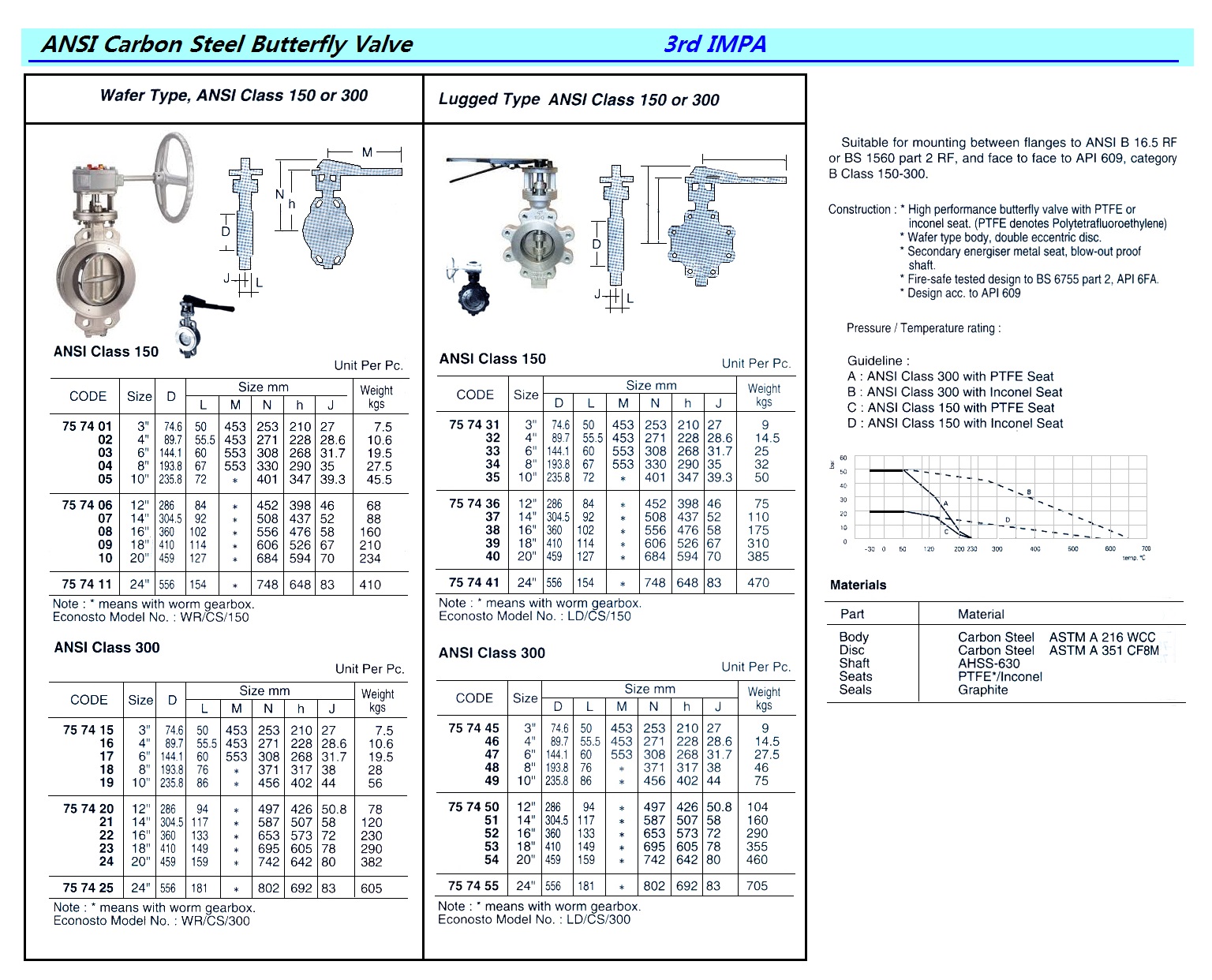 BUTTERFLY VALVE (ANSI), CARBON STEEL, WATER TY, ANSI CLASS 300, SIZE D 12" |