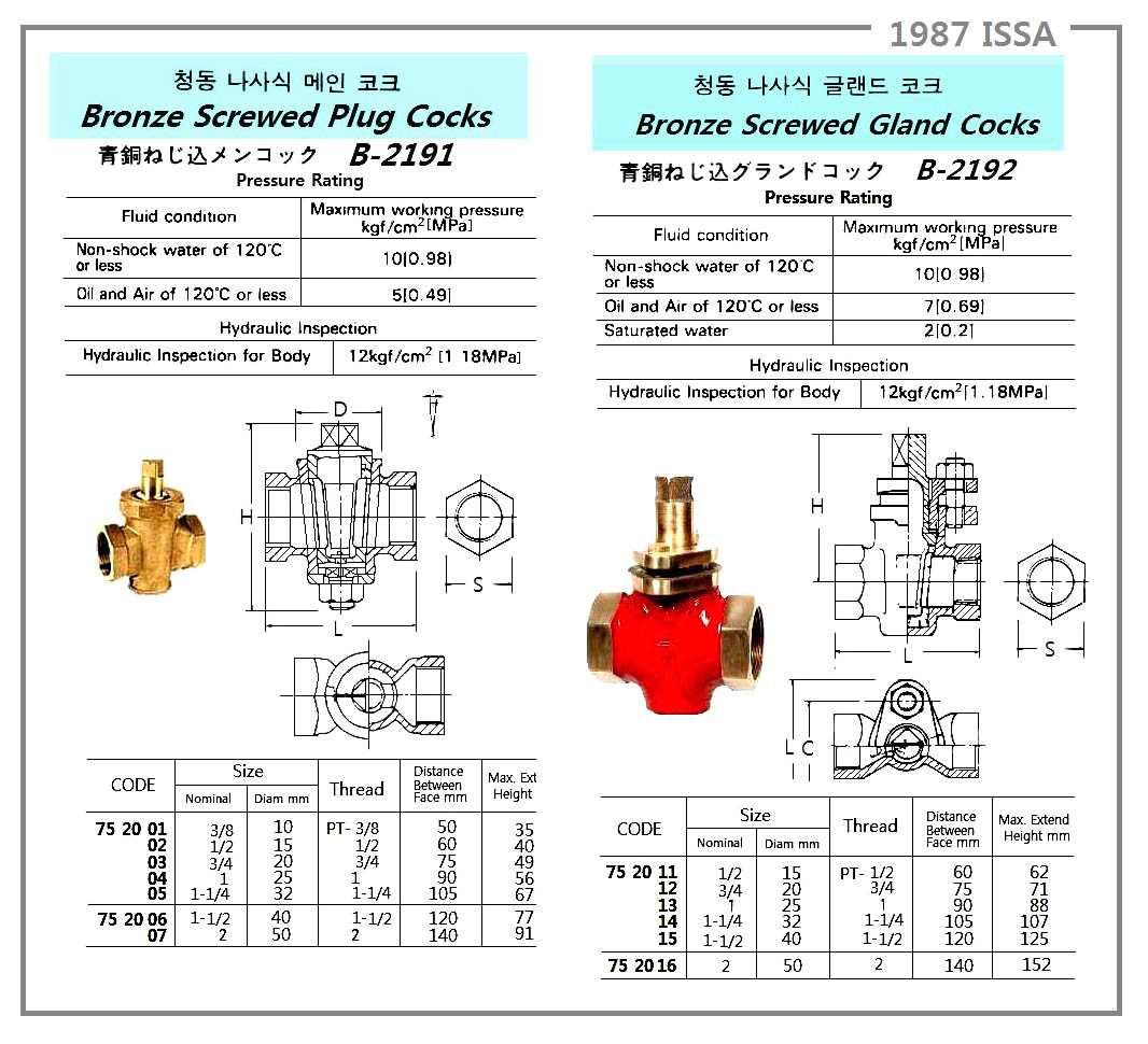 BRONZE SCREWED PLUG COCK, JIS B2191, 10 KGF/CM2, 2" |