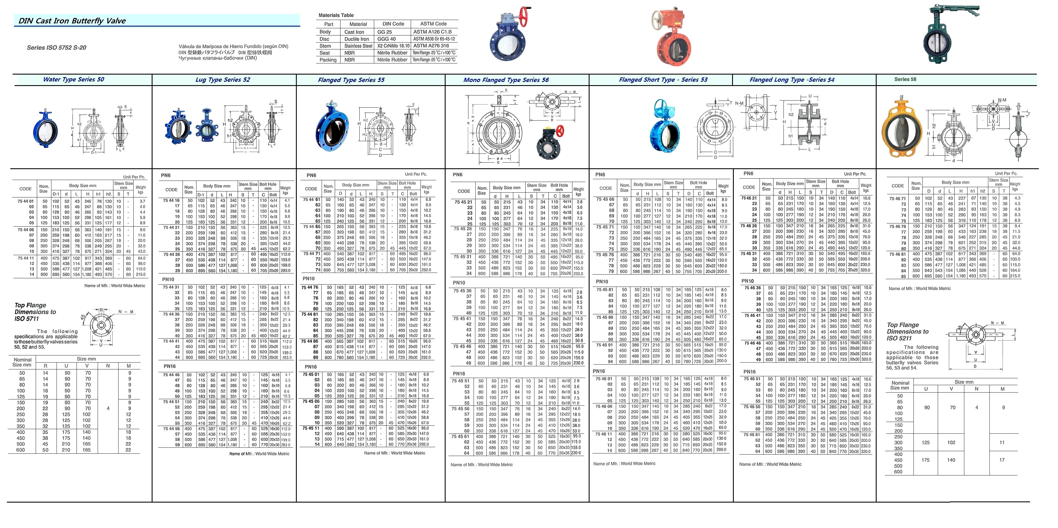 BUTTERFLY VALVE (DIN), CAST IRON, ISO 5752, MONO FLANGED TY, SERIES 56, PN6, SIZE 50 |