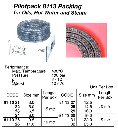 PILOTPACK 8113 PACKING, FOR HOT WATER/STEAM, 22 MM x 5 MTR |