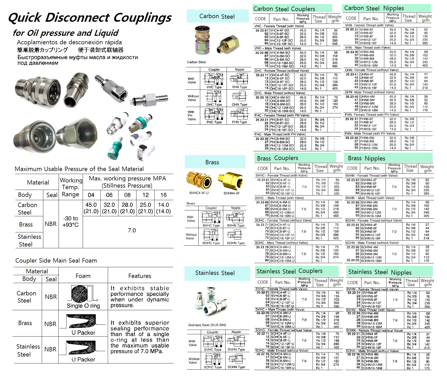 QUICK DISCONNECT CARBON STEEL COUPLING FOR OIL PRESS. AND LIQ., OHC-MALE THREAD (W/O VALVE), RC 1/4, OHC4-4M-SO |