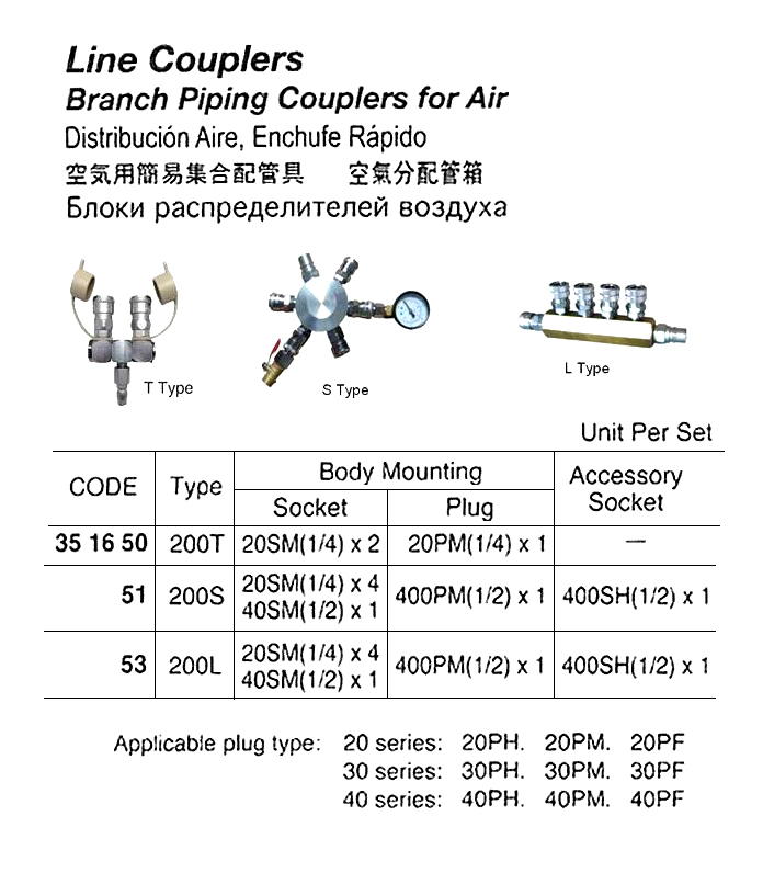 LINE COUPLER, BRANCH PIPING COUPLERS FOR AIR, 200L TYPE (L-20 A) 1/4" |