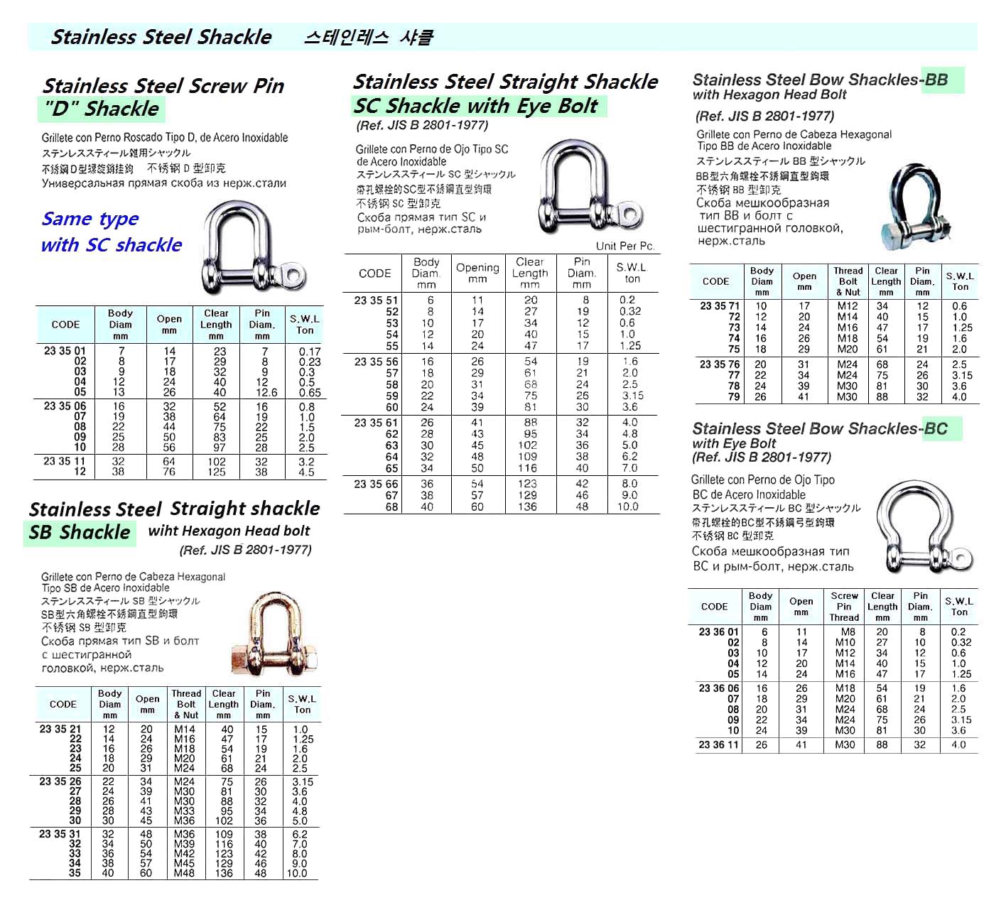 SUS316, SB Shackle, 1/2", KBC, China Made (2014-5) |
